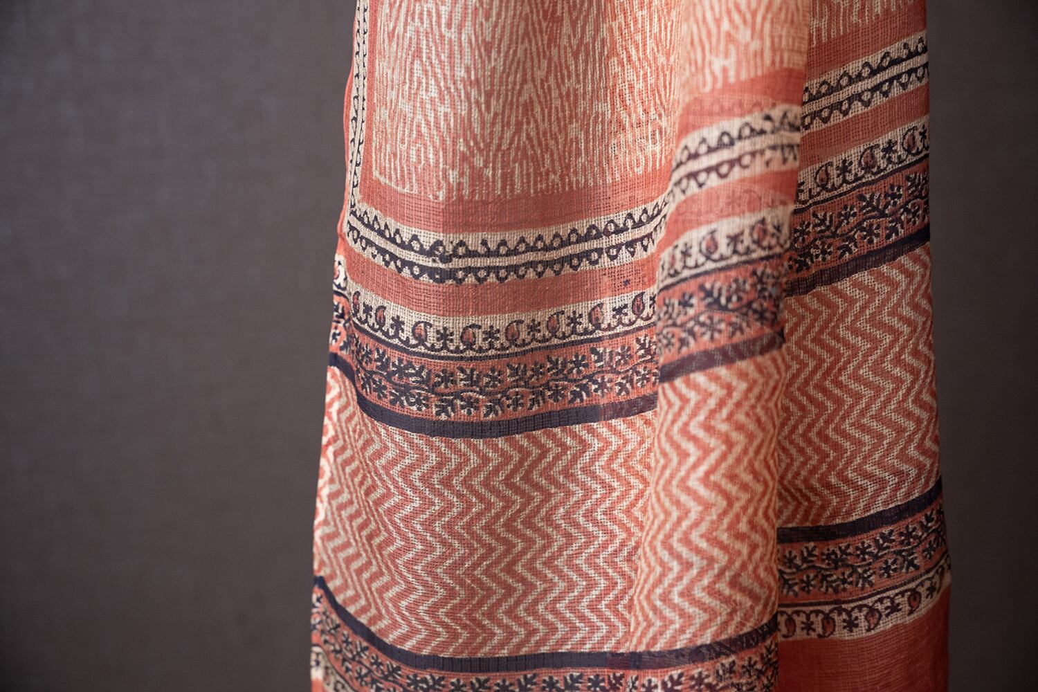 Kotadria is a unique weaving technique known for its lightness and breathability, and the combination of natural materials such as Indian Akane and iron, which are ideal for summer wear, and dove dyeing adds a unique beauty to the stole and enhances its appeal.
